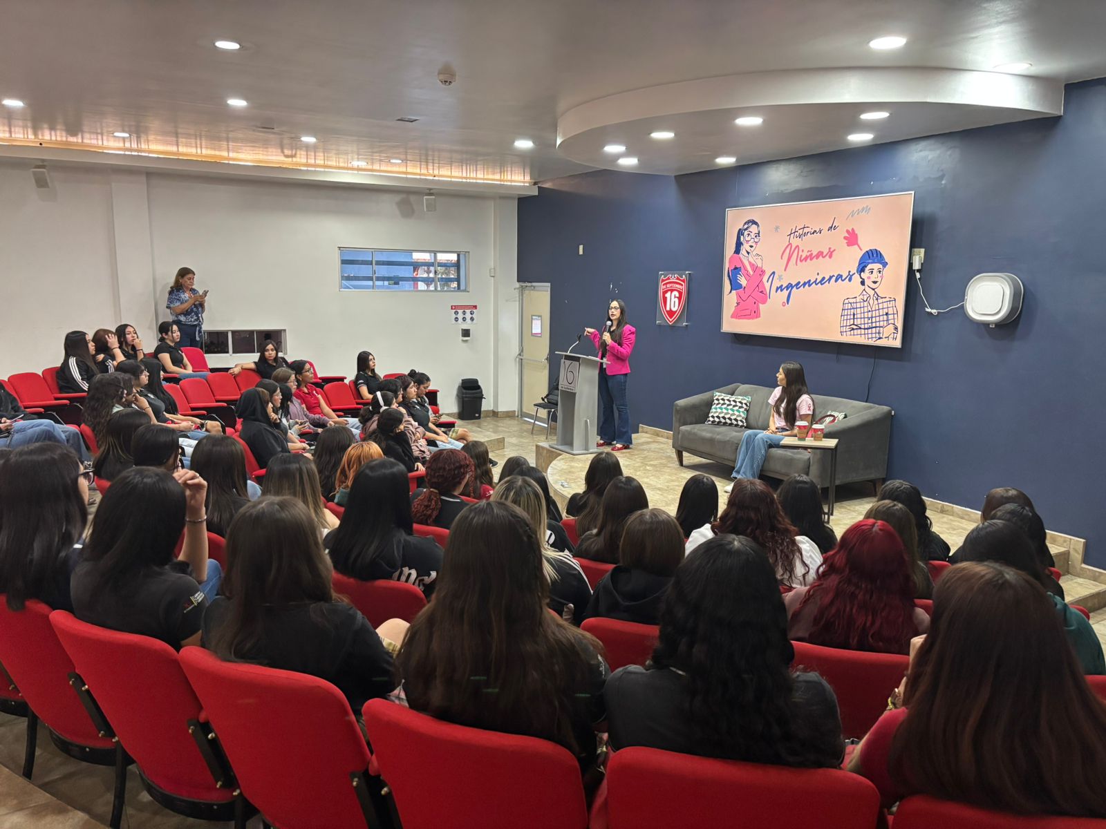 Las invitadas especiales ofrecieron una inspiradora plática titulada "Historia de Niñas Ingenieras", dirigida a todas las jóvenes estudiantes del plantel.